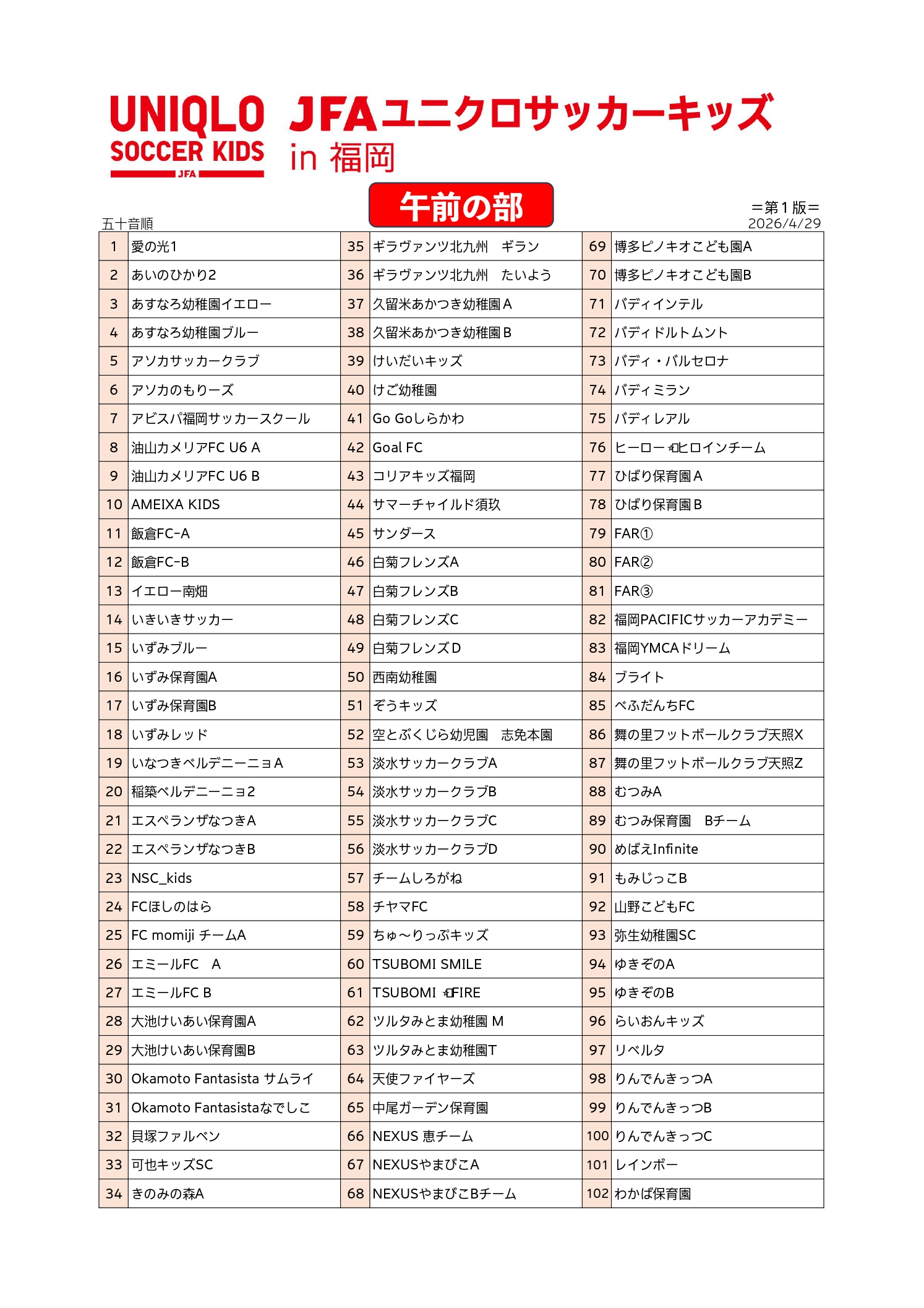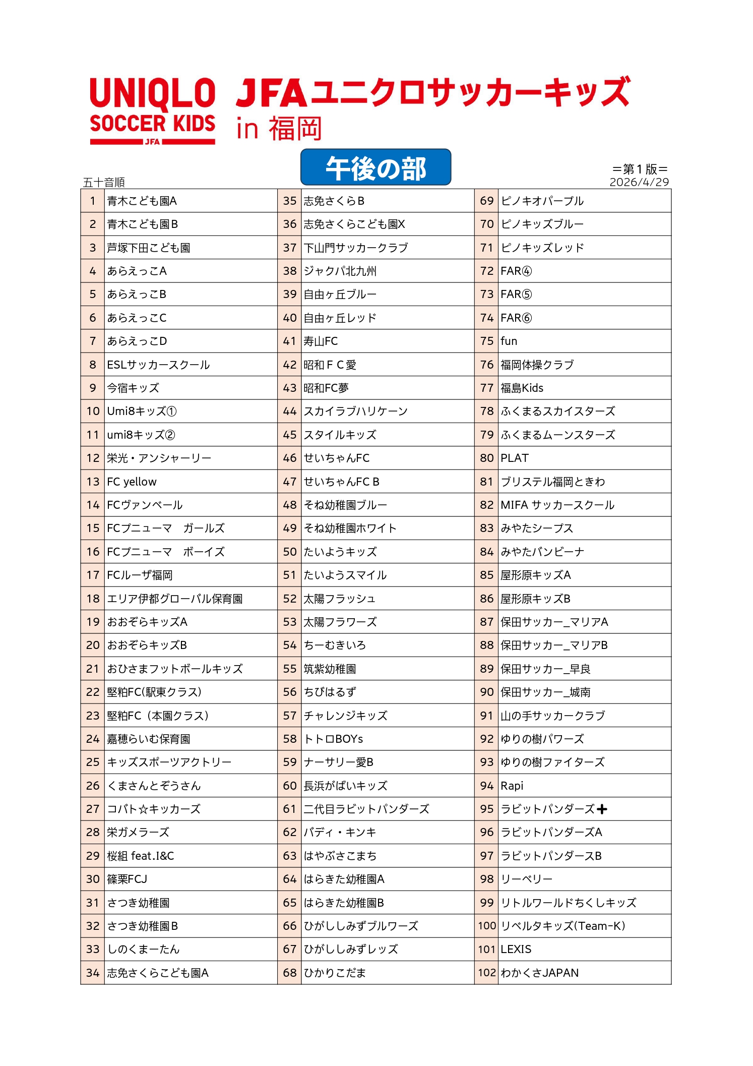 参加チーム一覧 (2026.4.29) 午前の部 PDF ※ダウンロード 午後の部 PDF ※ダウンロード 参加チーム募集のお知らせ (2026.4.8) ■開催日:2026年5月17日(日) ■会場:みずほPayPayドーム福岡 ■募集期間:2026年4月10日(金)~ 4月28日(火)17:00まで 詳しくは、下記ファイルよりご確認ください。 ※ダウンロード